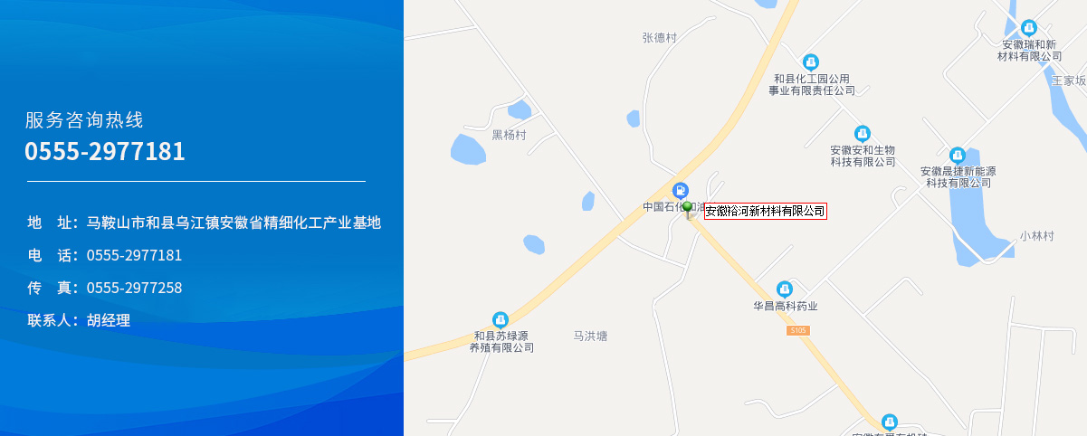 地址:安徽省馬鞍山市和縣烏江鎮(zhèn)安徽省精細(xì)化工產(chǎn)業(yè)基地 電話:0555-2977181 手機:187-0551-7353/胡經(jīng)理